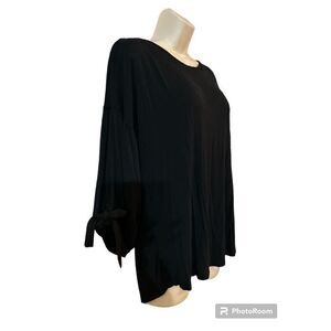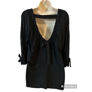 Hannah Sz S Soft Black Tie Sleeve Deep V Tie Back Top. See photos for measurements.