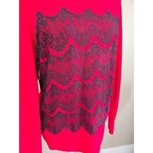 Hannah Top Red Size XL Black Lace panel across front Long sleeve Crewneck Measurement is shown