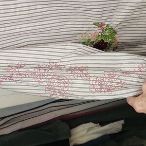 Chic shirt with brown stripes. Features elegant floral details. Ideal for everyday style.