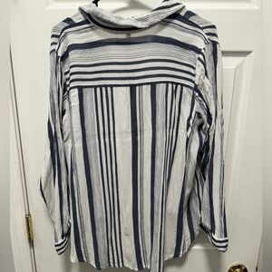Hannah Woman Blouse Top Shirt Button Up Striped Long Sleeve Blue White Sz 2X