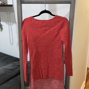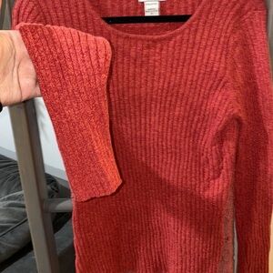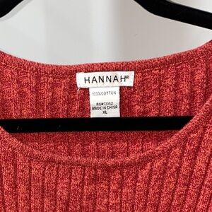hannah sweater used in pre loved condition i would say it runs small it's a tight fittings sweater size xl it’s a red/ pink M1