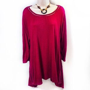Hannah Woman Burgundy Handkerchief Hem Top Sz 2X