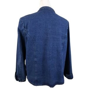 Hannah~Woman Size L~ Blue Denim Cotton Button-Up Long Sleeve Shacket Embroidered