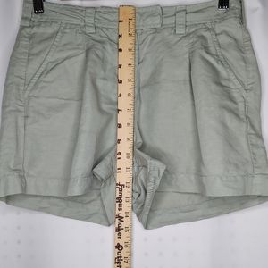 Hannes Roether Linen-Cotton Shorts Women XS Green Shortie Pleated Slash Pockets