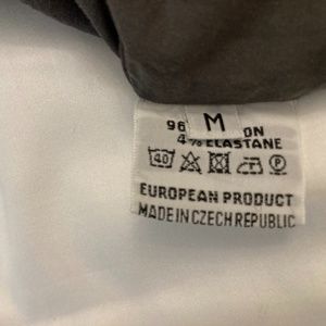 It has a vertical stitching detail, similar to quilting, causing it to gather in the middle and then flare out.