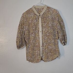 Cute Hanni Y floral cotton Button up Vintage style. Cottage Core type shirt.
