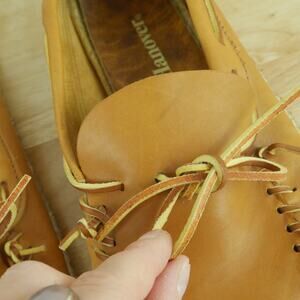 There is some dust/buildup on sole at toe area, some dust inside, some scuffs/marks on leather uppers.