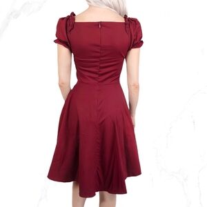 Hanpceirs Burgundy Fit-and-Flare Dress Size S Square Neck Puff Sleeves