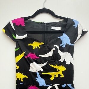 Hanpceirs Dinosaur Print Retro Vintage Cocktail Swing Dress with Pockets