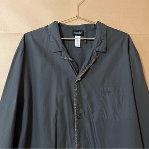 Hanro | Men's Woven Floral Piped Trim Pajama Shirt Button Down Gray Pjs Size XL