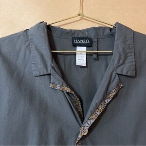 Hanro Men's Woven Floral Piped Trim Pajama Shirt Button Down Gray Pjs Size XL