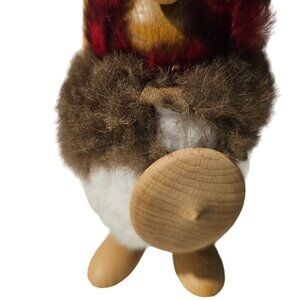 Bring a touch of Nordic charm to your space with this wooden Viking figurine by Hans Bolling, complete with a fierce expression, shield, and spear.