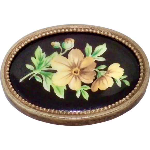 Hans Hansen Signed Denmark 985 GOLD 14K Enamel Flower Brooch Pin Golden 13 grams