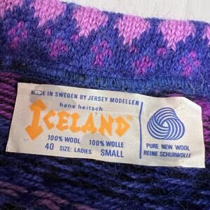 Hans Heitsch Iceland Vintage Purple Black Wool Sweater Women's size Small