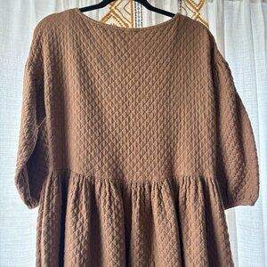 Hansel From Basel Sonja Quilted Dress (Size 1 or S) Camel Midi Modest Oversized