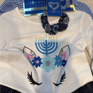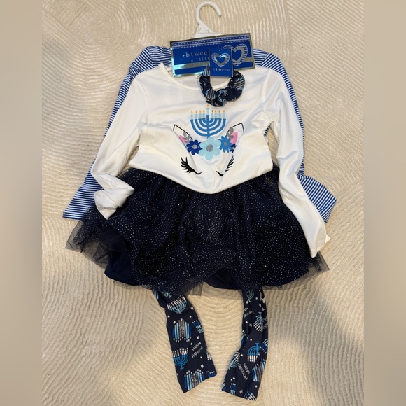 NWT Two long sleeve tops, leggings, sparkle skirt and hair tie