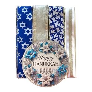 Hanukkah Wreath Kit | Happy Hanukkah Sign + Wired Ribbons | DIY Holiday Decor