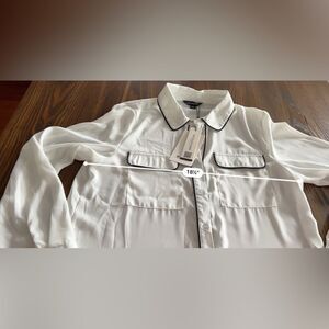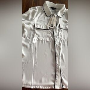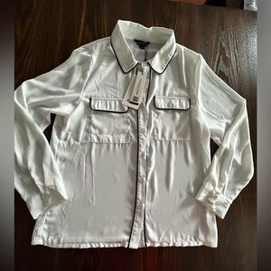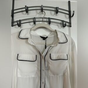 HaoDuoYi blouse women’s XL button down top‎ black white NWT
