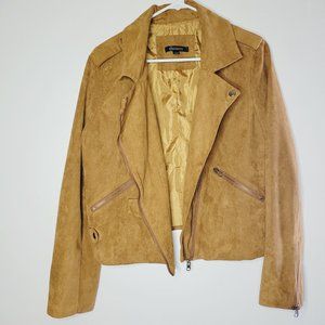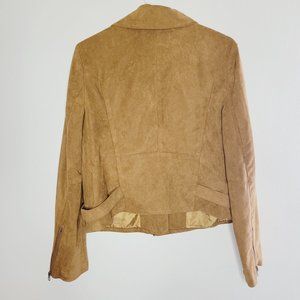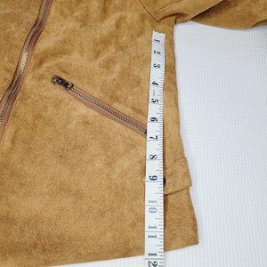 Haoduoyi Moto Jacket Faux Suede Size Large Camel Tan Collared Zippers Pockets
