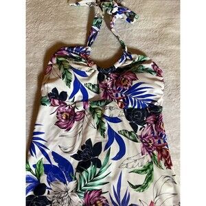 Hapari Tropic Sport Tankini Top Womens Small Green Tropical Floral Halter Swim