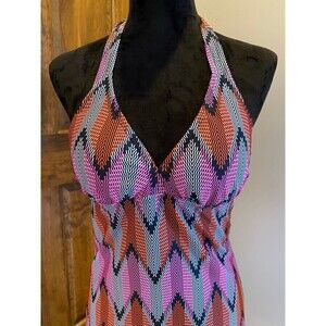 Hapari Womens Bikini Swimsuit Halter Top Size Medium Orange Pink Black