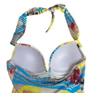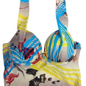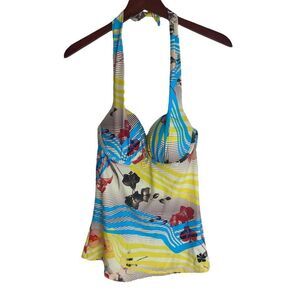 Hapari Womens Floral Stripe Tie Back Built-In Bra Tankini Top Multicolor Medium