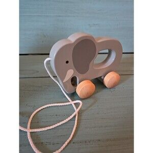 Hape: Push & Pull Elephant Gray Wooden Toy, Wooden Wheels Push-Pull-Grab 1+ Kids