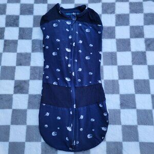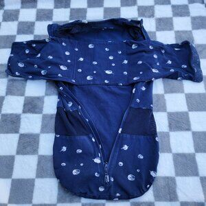 Happiest Baby Blue Organic Cotton Space Velcro & Zip Swaddle Size 2-4m