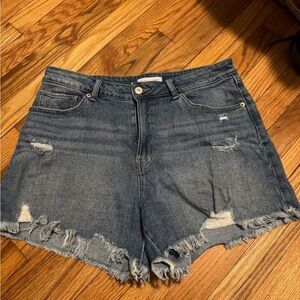 Keywords: denim shorts, jean shorts, distressed, frayed hem, light wash, casual, summer, festival, Happily Grey, womens shorts, destroyed denim, five pocket, shorts
