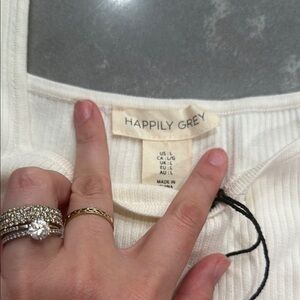 Chic ribbed knit top in a soft cream color. Ideal for layering or wearing alone.