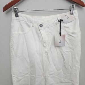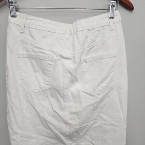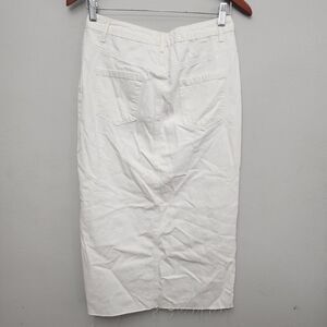 Happily Grey White Cotton Denim Jean Skirt Long Front Slit Raw Hem Size 5/26