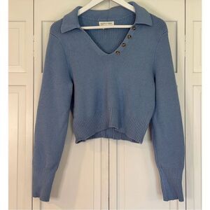 Happily Grey blue ribbed collared cropped sweater large