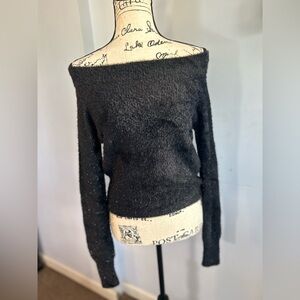 Happily Grey fuzzy sweater super soft stretchy off shoulder goth whimsical fairy witchy romantic sexy