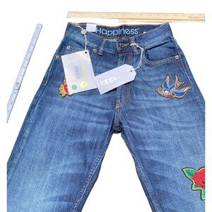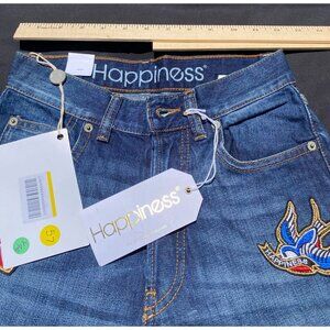 Happiness Dark Wash Patch Embroidered Women's Jeans Size 25 NWT