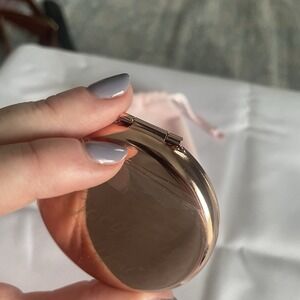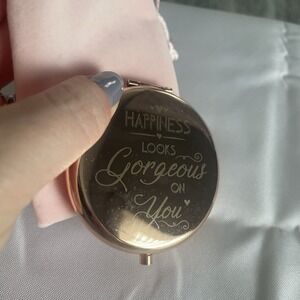 Happiness Looks Gorgeous On You Metallic Rose Colored Compact Double Mirror.