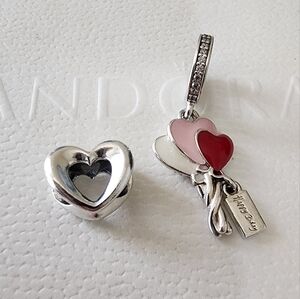 Authentic Pandora Happy Bday Balloon Dangle Charm and PANDORA Radiant Open Heart Charm bundle