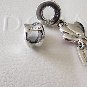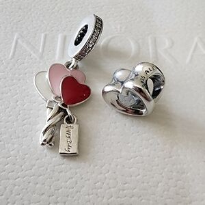 Authentic Pandora Happy Bday Balloon Dangle Charm and PANDORA Radiant Open Heart Charm bundle