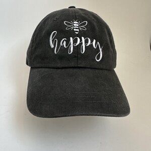Happy Bee Dad Hat Embroidered Cap Adjustable Leather Strap Back Adams Headwear