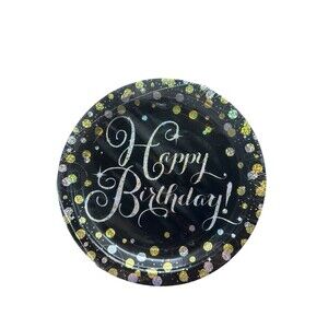 Happy Birthday Black Gold Silver 24 Plates (9") & 3 Packs Matching Napkins