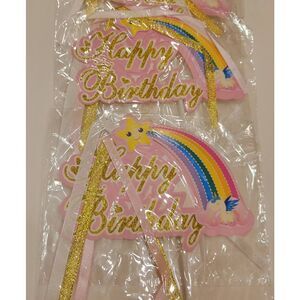 Happy Birthday Cake Topper 10 pcs Glitter Rainbow Cloud 6in x 4in