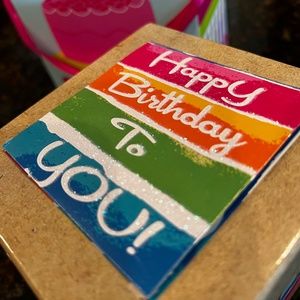 (3) Slide open style box with vibrant balloon graphics (10” x 10” x 1 3/4” H)