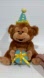 Adorable plush monkey wearing a party hat holding a gift is ready to party!
