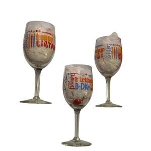 Happy Birthday Wine Glasses Set of 3 Colorful Party Celebration Printed Stemware