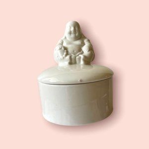 Happy Buddha White Ceramic Jewelry/Trinkets Jar