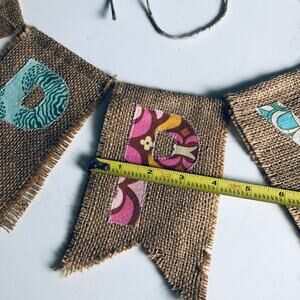 "Happy" Burlap Embroidered Decorative Banner Amy Butler Shabby Chic Farmhouse Vintage Inspired Handmade Nursery Decor Unique