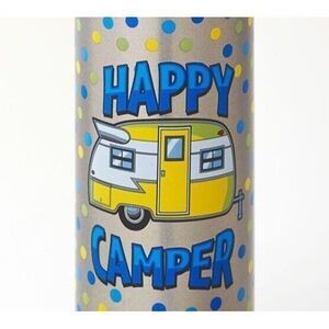 Happy Camper Stainless Steel Beverage Can Travel Mug with Flip Top Spout.