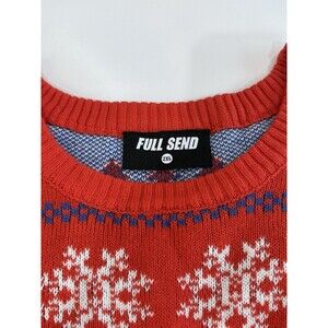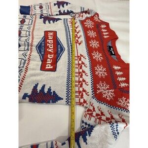 The Happy Dad Hard Seltzer Full Send Ugly Christmas Knit Sweater in size XXL is a festive and quirky addition to any man's wardrobe. This red sweater features a knit fabric in a traditional sweater style, perfect for embracing the holiday season in style. The design with a happy character and theme of "Dad" adds a unique touch that is sure to bring joy and comfort during the colder months.