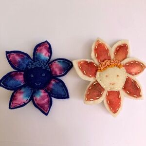 Happy Face Flower Pin Brooch Hand-sewn in Orange