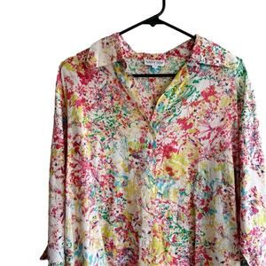Happy Few Cotton Splatter Multicolor Button Up Tunic Oversized Top