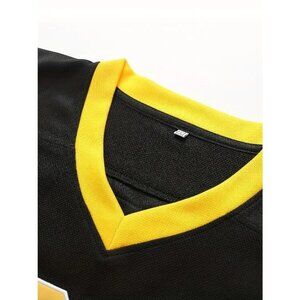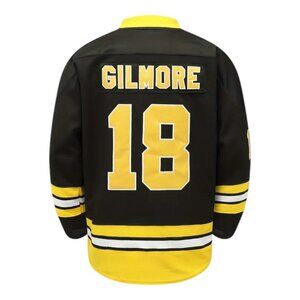 Elevate your game day attire with the men's Boston #18 Happy Gilmore black stitched hockey jersey, a tribute to the iconic Happy Gilmore movie. This jersey features high-quality stitching and a sleek black design, ensuring both style and comfort. Perfect for fans and collectors alike, it showcases the number 18, celebrating the beloved character. Wear it proudly at the rink or during casual outings to demonstrate your passion for hockey and classic cinema.